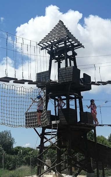 Piscina, kayak en el lago, multiaventura, tirolina, rocódromo, animales de granja y deportes varios.